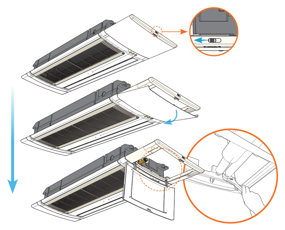 With the integration of the grille panel and inspection hole, there is no need to install a separate inspection hole on the ceiling
