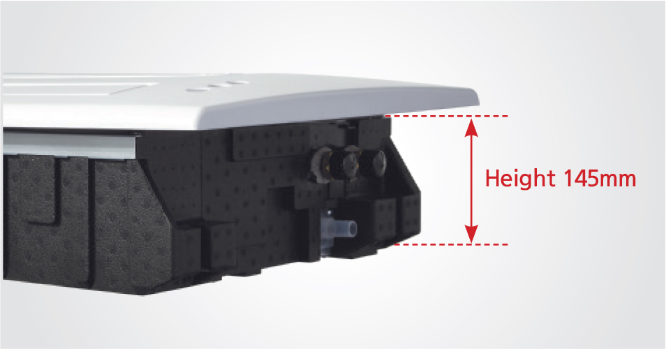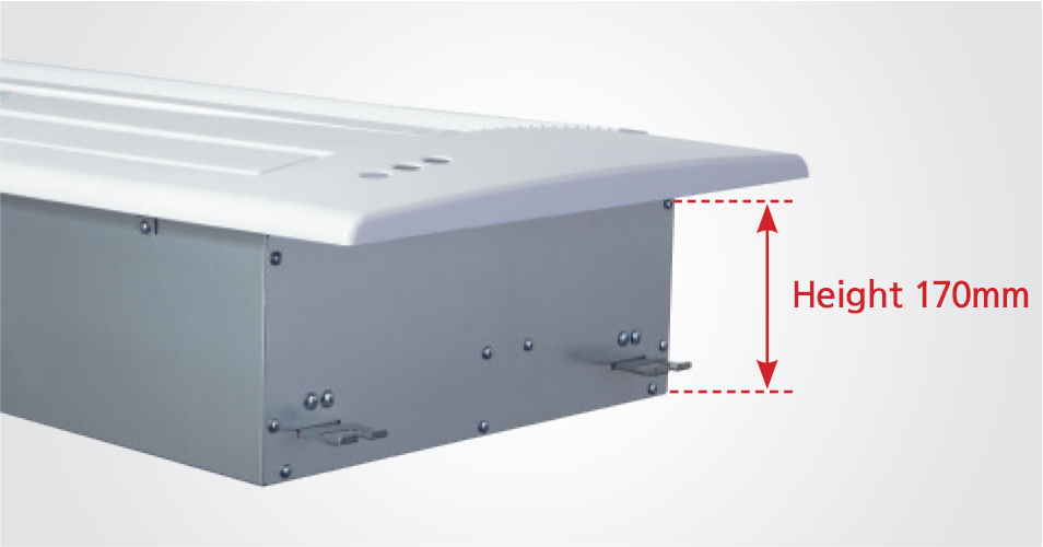 The airflow control grille is made of aluminum, and EPS is used as the insulation material inside the product, making it lightweight. The height of the unit can be adjusted up to 70 mm depending on the ceiling height at the installation site.