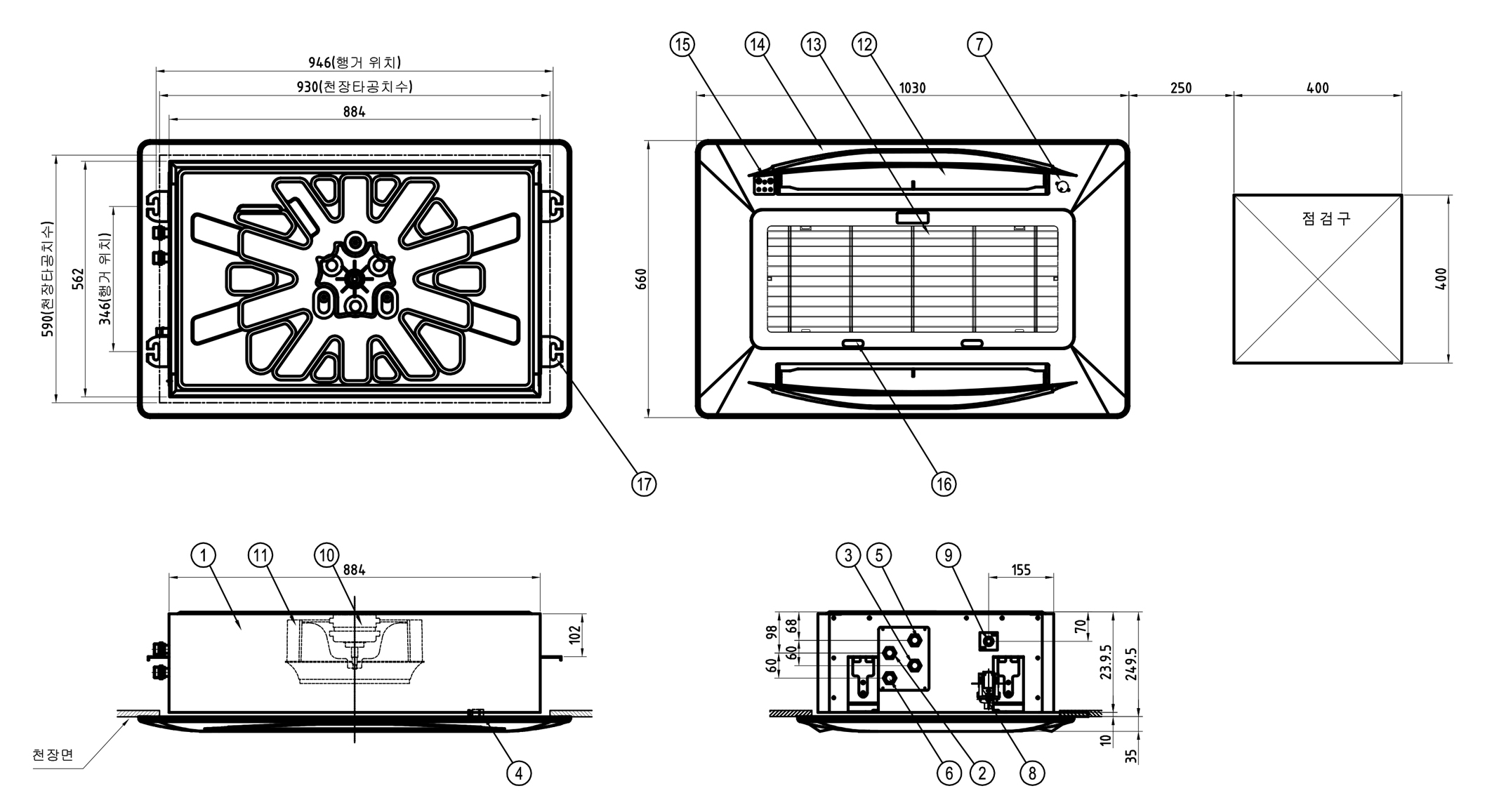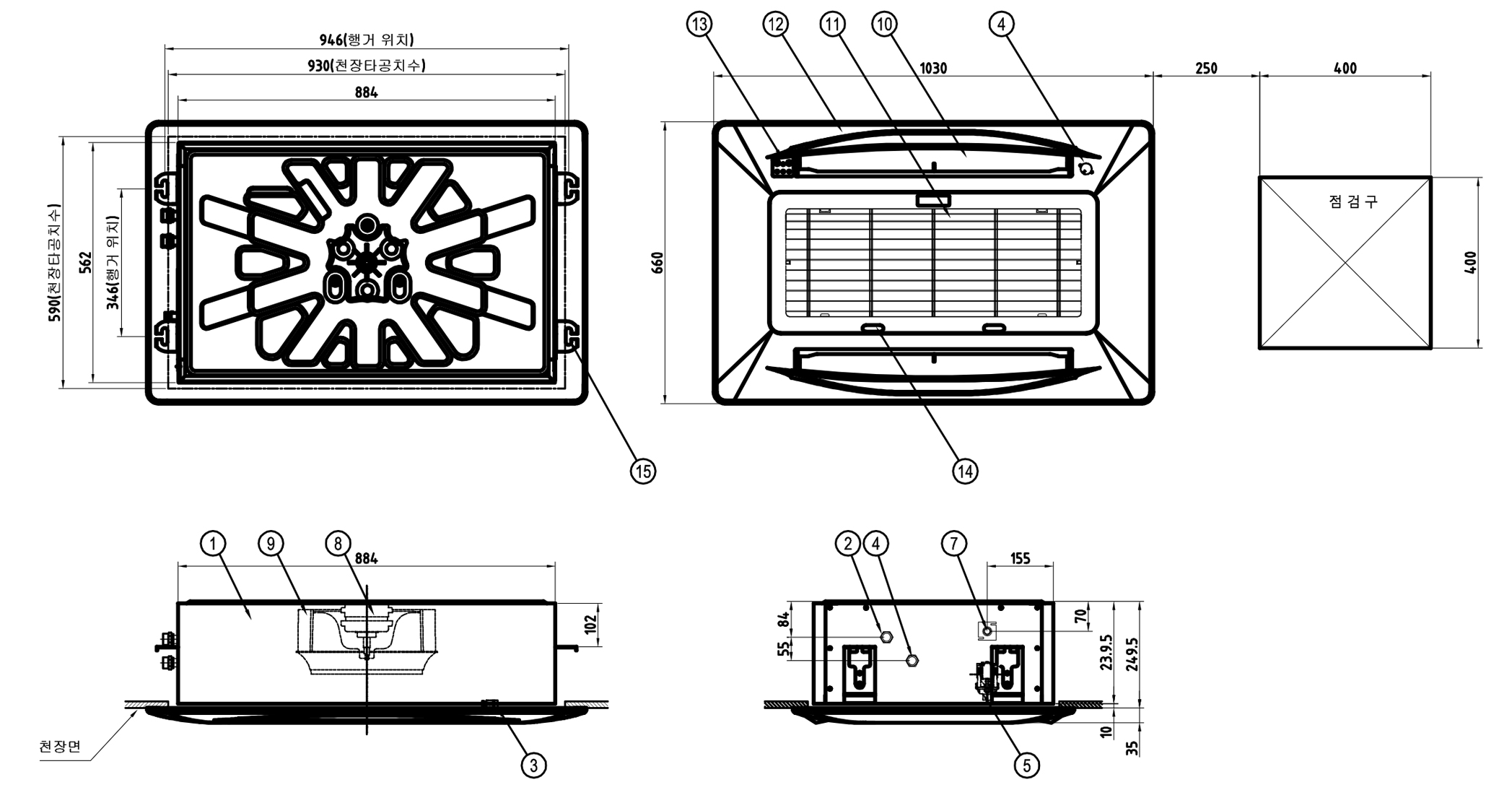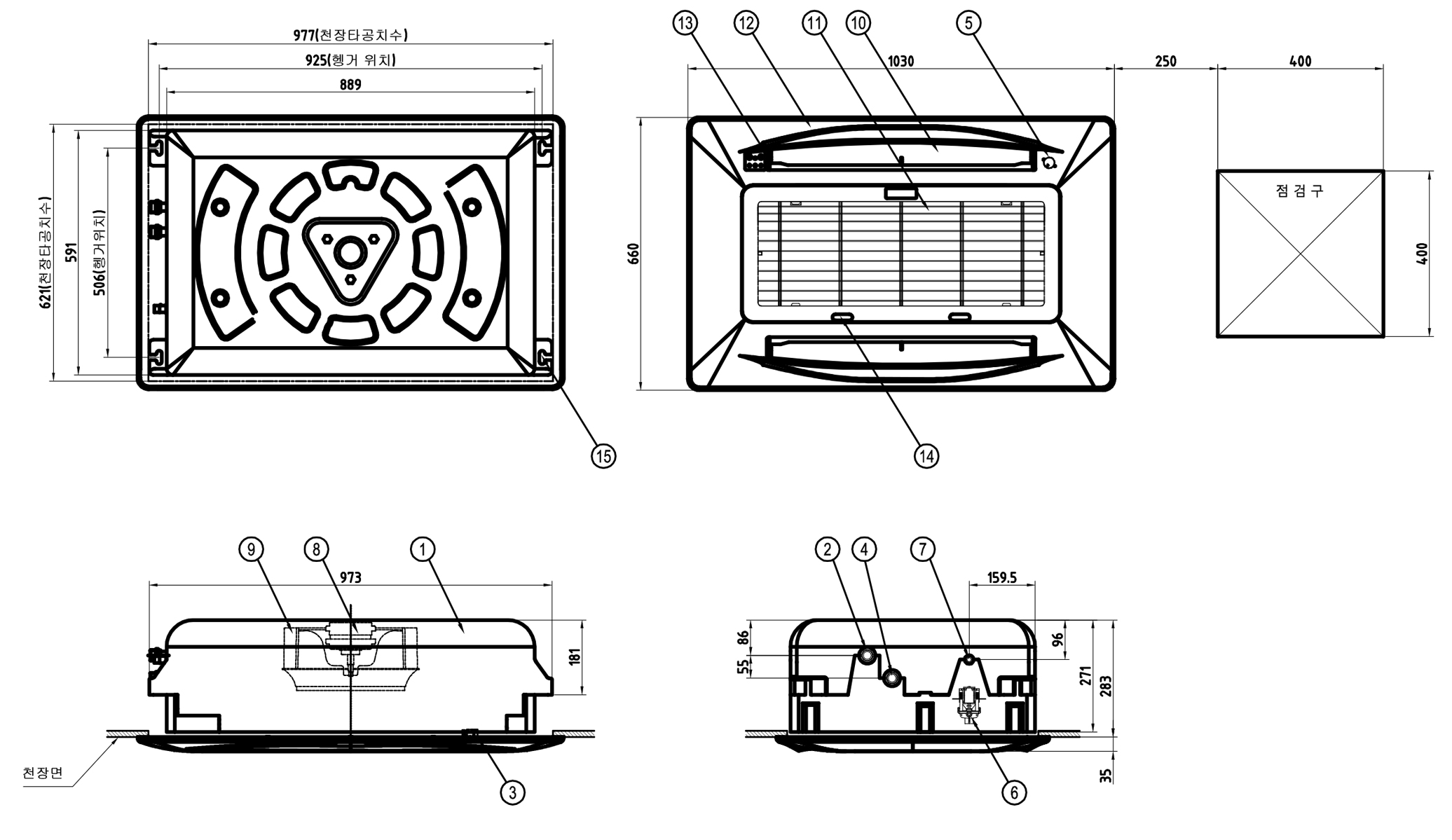 | External Material | Main Body: Zinc-Coated Steel Plate (0.8 t, 1.0 t) / Grille Panel: Injection Molded (HIPS, ABS Material) | |||||||