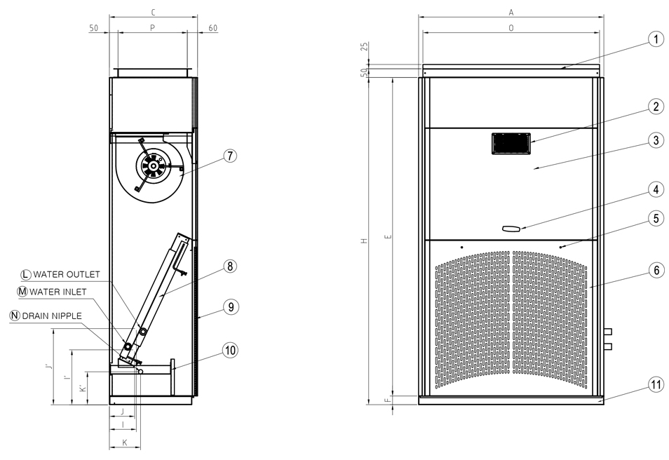 | 모델 | A | B | C | D | E | F | H | I(IN) | I' | J | J'(OUT) | K | K'(Drain) | L | M | N | O | P |