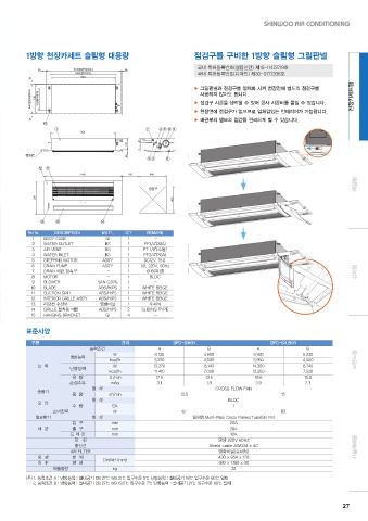 1방향 천장카세트 슬림형 대용량 점검구를 구비한 1방향 슬림형 그릴판넬