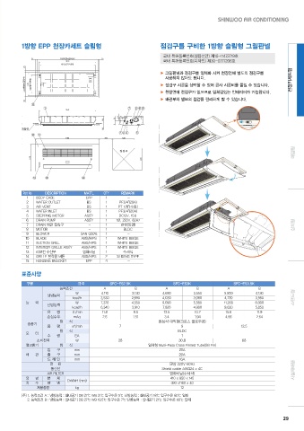 (주) 1. 능력조건 A : 냉방능력 : 실내공기 DB 27℃ WB 21℃ 입구수온 5℃ 난방능력 : 실내공기 18℃ 입구수온 80℃ 일때