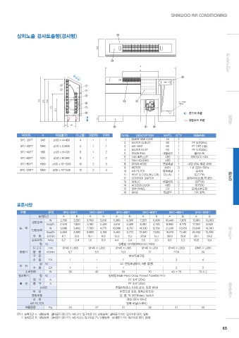 (주) 1. 능력조건 A : 냉방능력 : 실내공기 DB 27℃ WB 21℃ 입구수온 5℃ 난방능력 : 실내공기 18℃ 입구수온 80℃ 일때