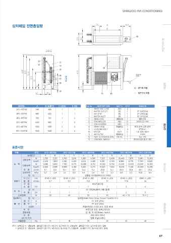 (주) 1. 능력조건 A : 냉방능력 : 실내공기 DB 27℃ WB 21℃ 입구수온 5℃ 난방능력 : 실내공기 18℃ 입구수온 80℃ 일때