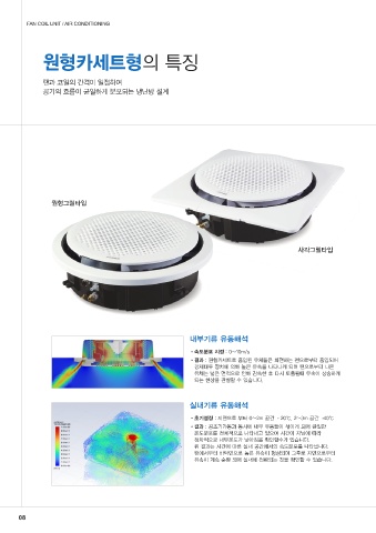 • 결과 : 원형카세트로 흡입된 유체들은 회전하는 팬으로부터 흡입되어