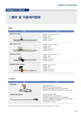 * 당사에서는 기본적으로 판매하는 밸브 이외에 각종 비례제어, 정유량 복합 밸브 등도 취급하며 각각 시스템에 맞추어 설계가 가능합니다.