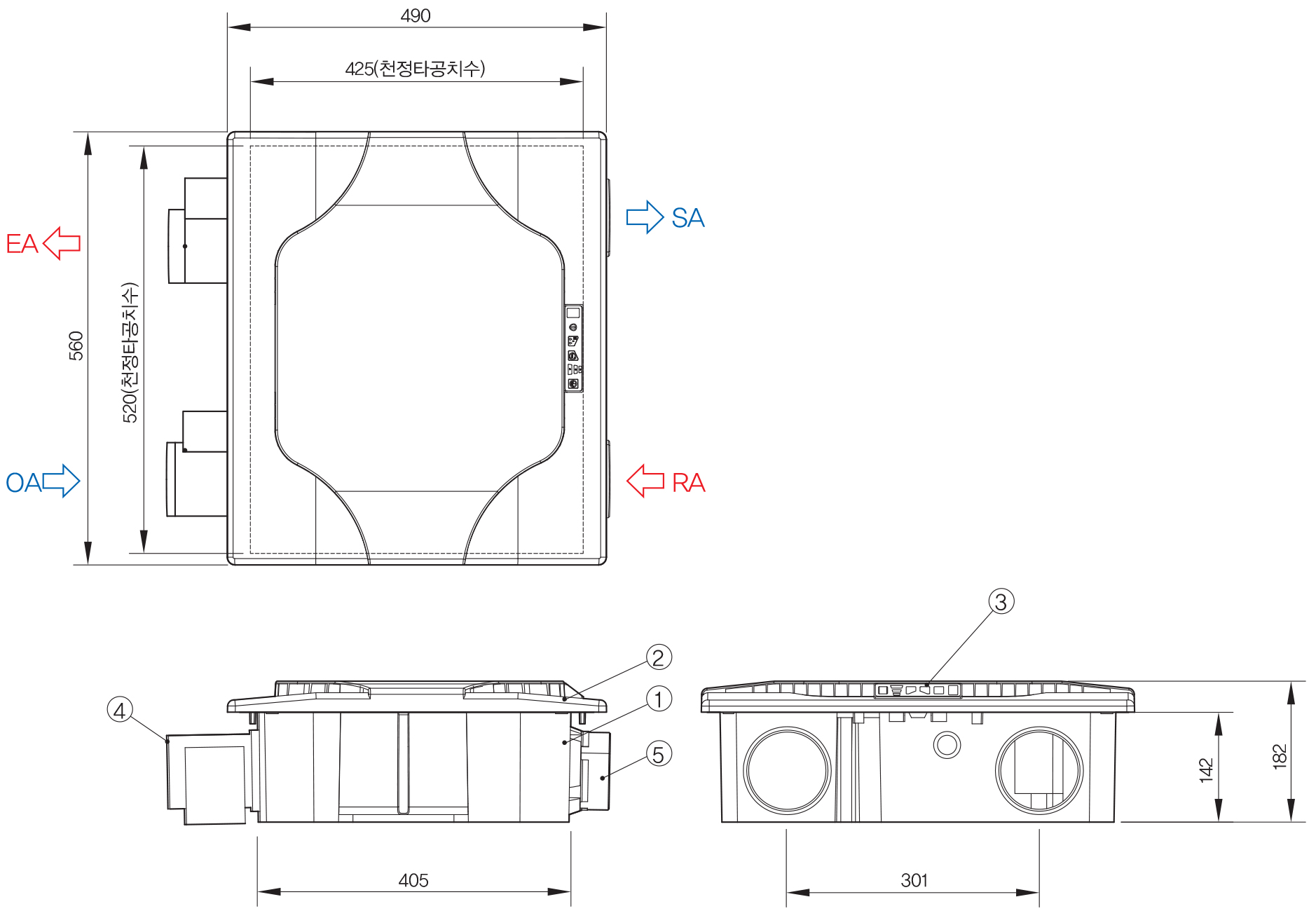| 열 회수율 | % | 난방 : 76 / 냉방 : 65 | ||