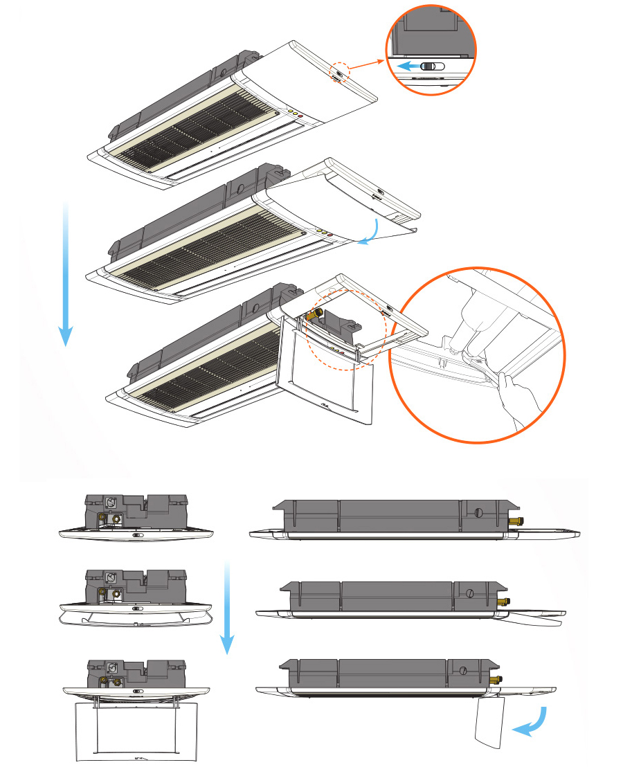 그릴판넬과 점검구를 일체화 시켜 천장면에 별도의 점검구를 시공하지 않아도 됩니다.
