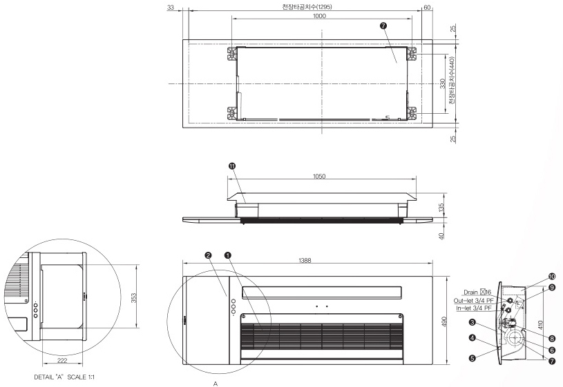 | 8 | DRAIN PUMP | - | 1 | Φ220V, 10W, 양정 600mm |