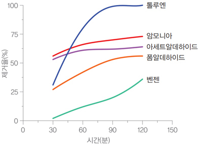 우수한 탈취 성능 발휘, 새집증후군 예방(폼알데하이드, 툴루엔, 암모니아, 벤젠, 아세트알데히트 등의 유해가스 제거)