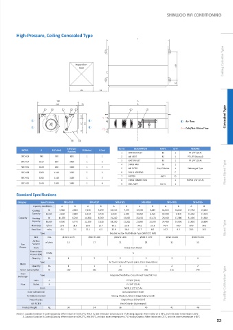 (Note) 1. Capacity Condition A: Cooling Capacity: When indoor air is DB 27°C, WB 21°C, and inlet water temperature is 5°C Heating Capacity: When indoor air is 18°C, and inlet water temperature is 80°C