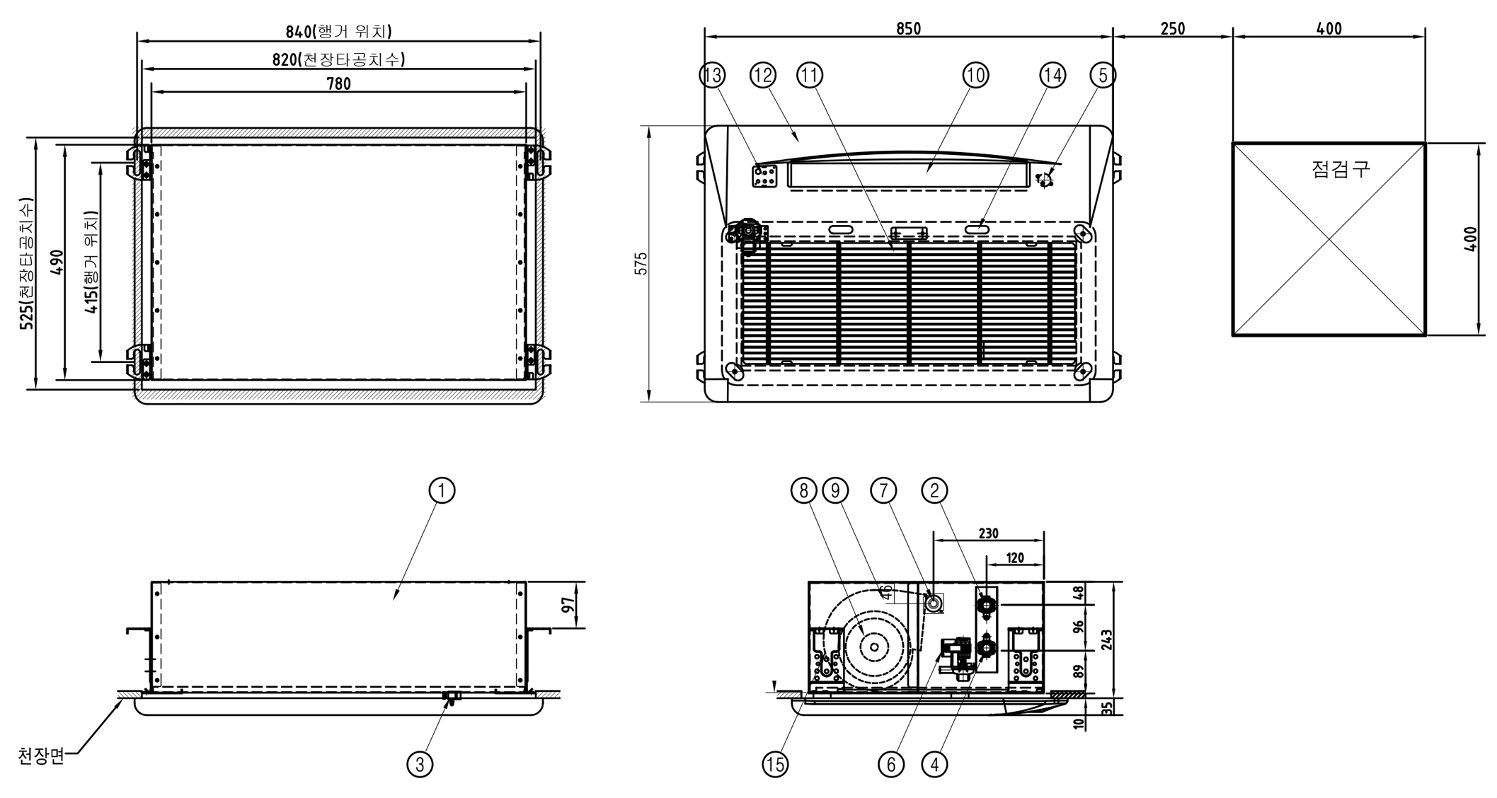 | External Material | Main Body: Zinc-Coated Steel Plate (0.8 t, 1.0 t) / Grille Panel: Injection Molded (HIPS, ABS Material) | |||||||