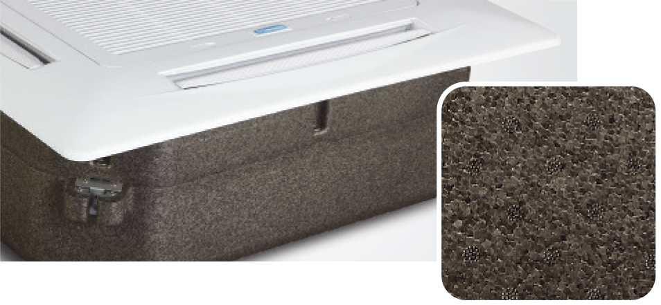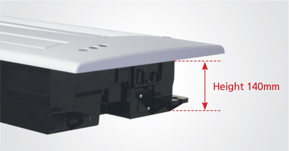 The airflow control grille is made of aluminum, and EPS is used as the insulation material inside the product, making it lightweight. The height of the unit can be adjusted up to 70 mm depending on the ceiling height at the installation site.