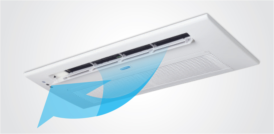 The swing blades can be adjusted to control the direction of airflow. The product also features aerodynamic blades designed to prevent direct contact between the discharged air and the ceiling, helping to prevent ceiling contamination. (Patent Acquired)