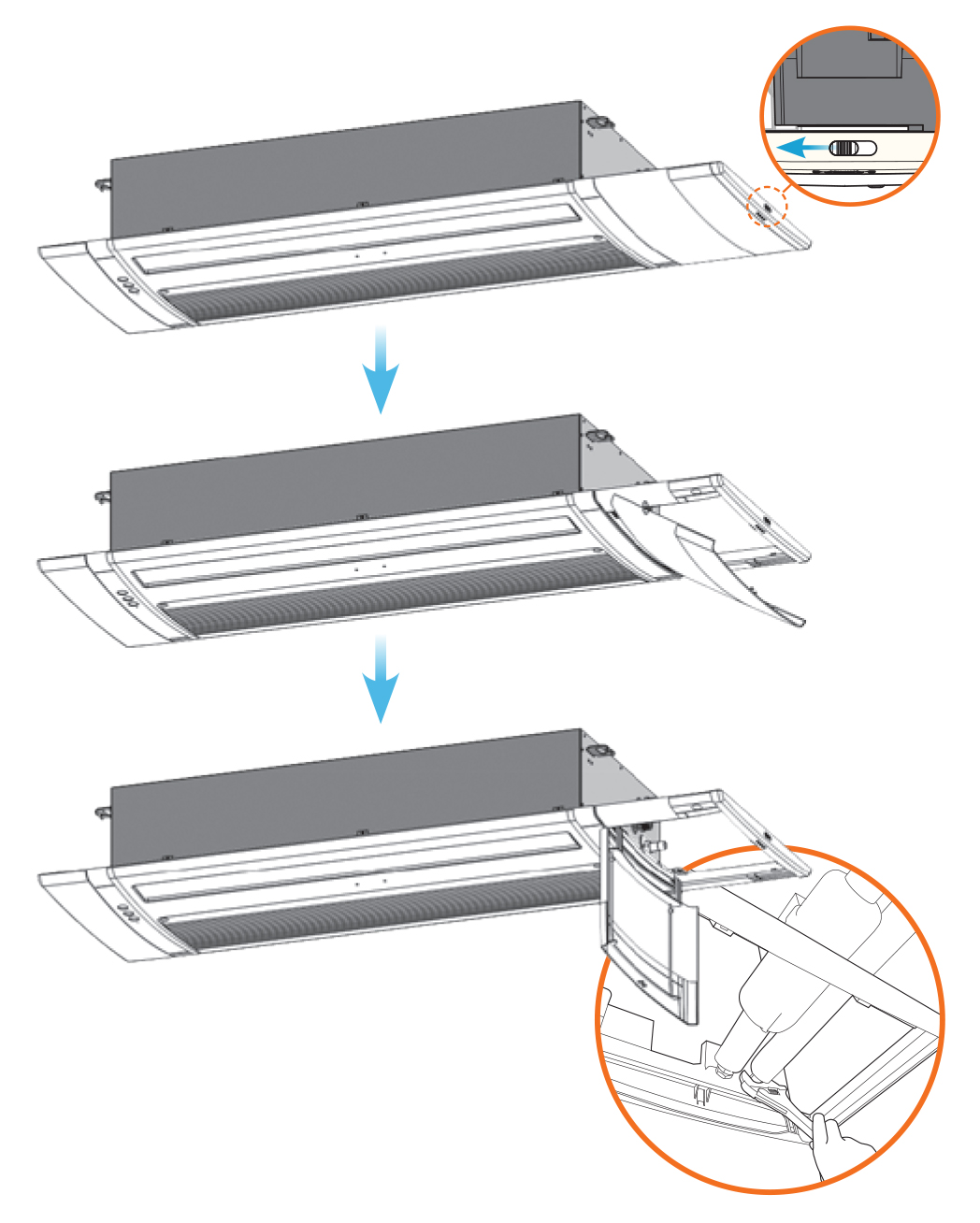 With the integration of the grille panel and inspection hole, there is no need to install a separate inspection hole on the ceiling