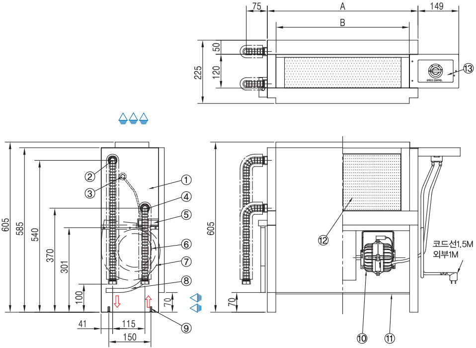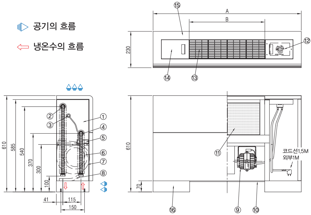 With the application of a BLDC motor as a standard specification power consumption can be reduced by more than 30% compared to an AC motor with low power and high efficiency.Option