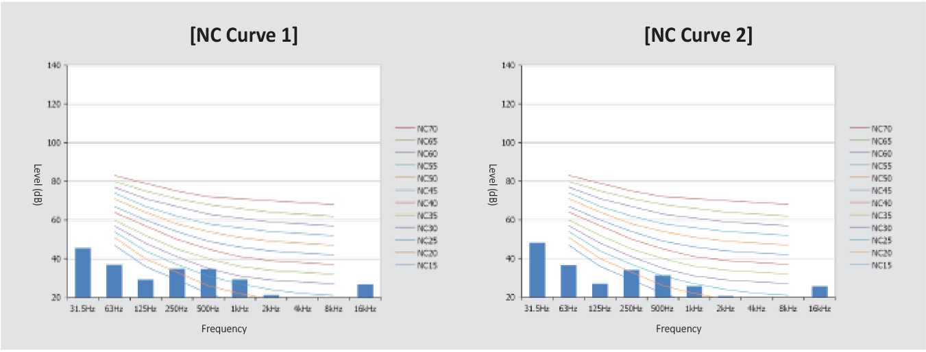NC (Noise Criteria) curve is a method of evaluating indoor noise based on the results of analyzing noise in 1:1 octave bands. It is a noise standard determined based on the degree to which it is harmful to conversation