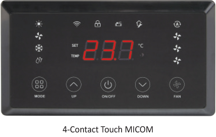 A contact-touch MICOM switch is used for freely selecting the airflow, and it allows for automatic maintenance of indoor temperature, enabling economical cooling and heating.