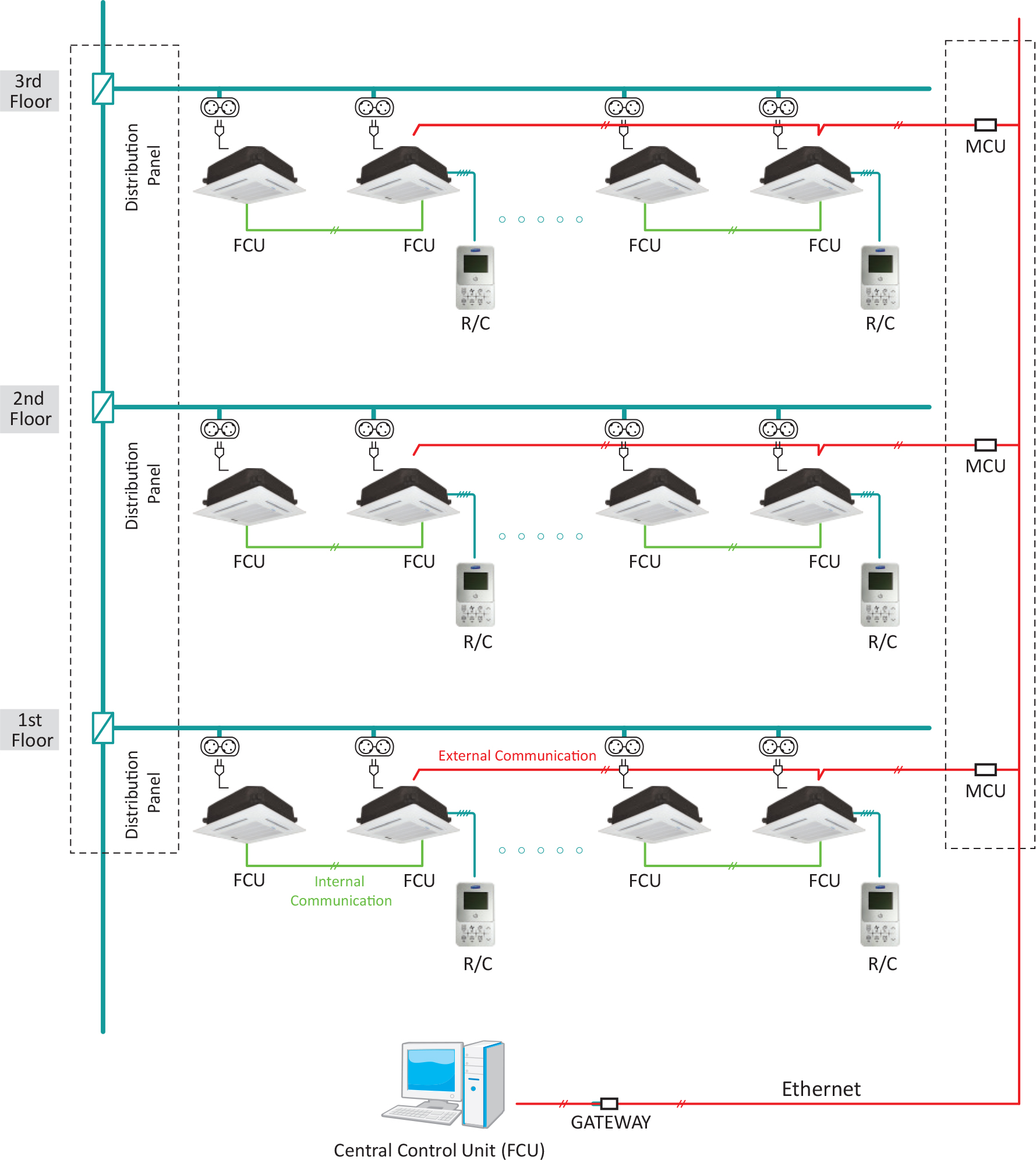 No separate communication line work required Network equipment related to communication must be installed on the FCU power line |