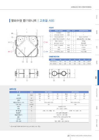 열 회수율 % 난방 : 70 / 냉방 : 45 난방 : 70 / 냉방 : 45