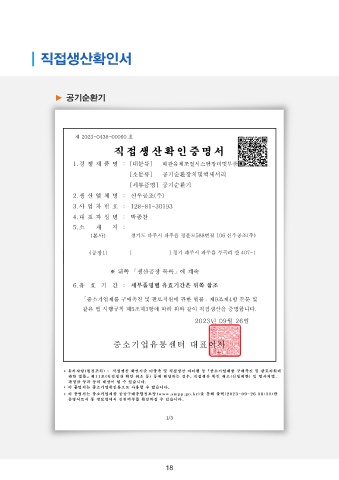 직접생산확인서 직접생산확인서 ► 공기순환기 18