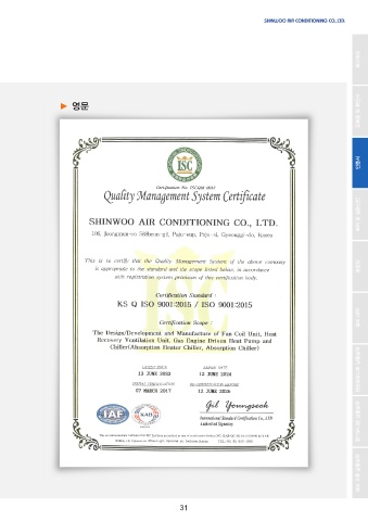 회사개요 등록증 및 확인서 ► 영문 인증서 특허 및 실용신안 표창장 설비 내역 팬코일유니트 납품실적 환기유니트 납품실적 해외 수출 납품실적 31