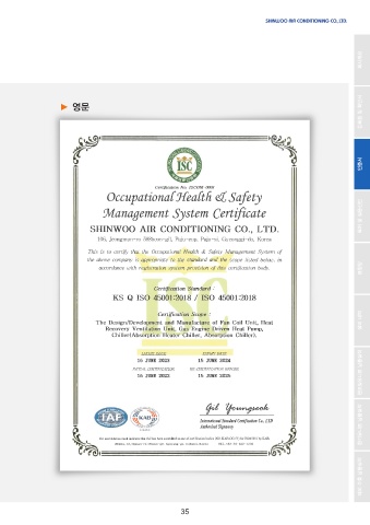 회사개요 등록증 및 확인서 ► 영문 인증서 특허 및 실용신안 표창장 설비 내역 팬코일유니트 납품실적 환기유니트 납품실적 해외 수출 납품실적 35