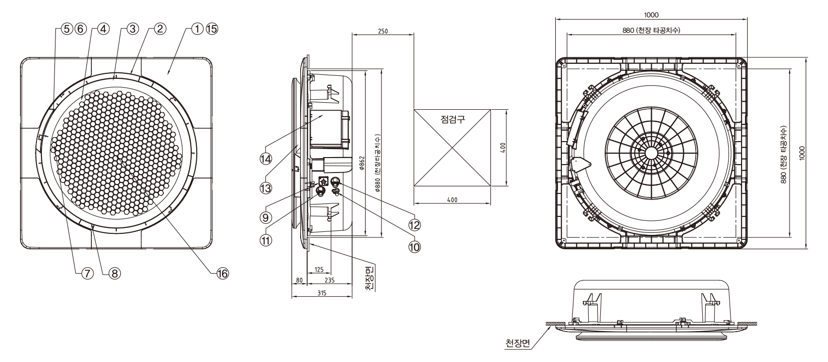 | 판넬 | Ø960 x 240(원형) / 1000 x 1000 x 74(사각) | |||||||||||||