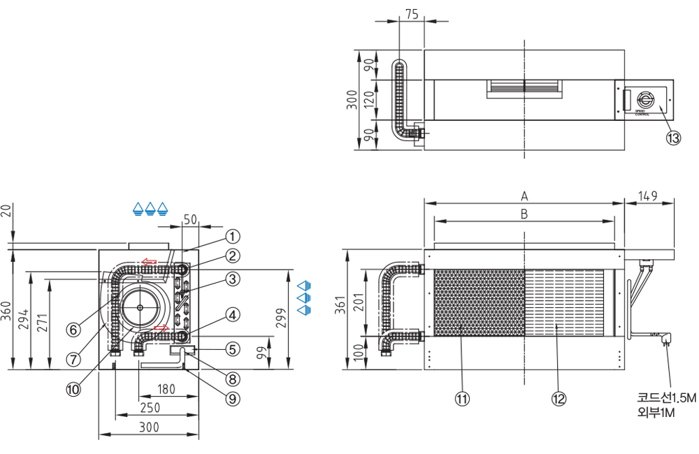 | 드레인 | 연질비닐호스 (내경 Ø14, 외경 Ø18) | |||||||||||||