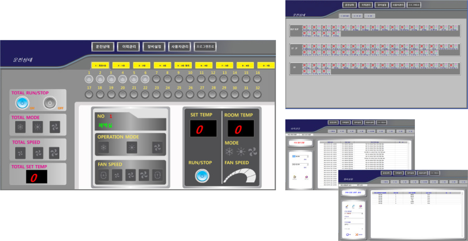 ▶사용자 관리 ▶설비 관리 : 설비(FCU, GROUP)의 생성, 수정, 삭제 기능 등 ▶자료 관리 : 운전상태 및 이상 발생 정보에 대한 관리, 검색 및 출력 등 |