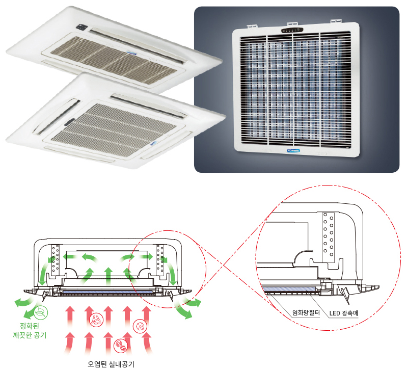 조류 인플루엔자(AI), 메르스(MERS), 세균, 곰팡이, 바이러스 등의 유해물질의 번식을 억제하므로 위생적인 실내 환경 유지가 가능